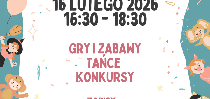 Drogie dzieci, przed nami wyjątkowe wydarzenie specjalnie dla Was: Bal przebierańców Czeka nas wspaniałe popołudnie pełne tańców, zabawy i mnóstwa niespodzianek! Pamiętajcie oczywiście o strojach – liczymy na Waszą kreatywność! Kiedy: 16 lutego O...