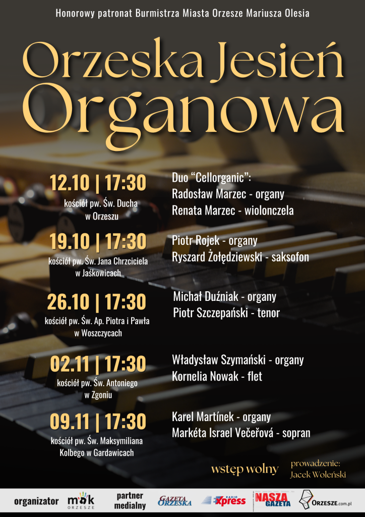 Wiemy, że wielu miłośników muzyki czeka na tę informację, dlatego z wielką radością zapraszamy na kolejną już edycję Orzeskiej Jesieni Organowej!