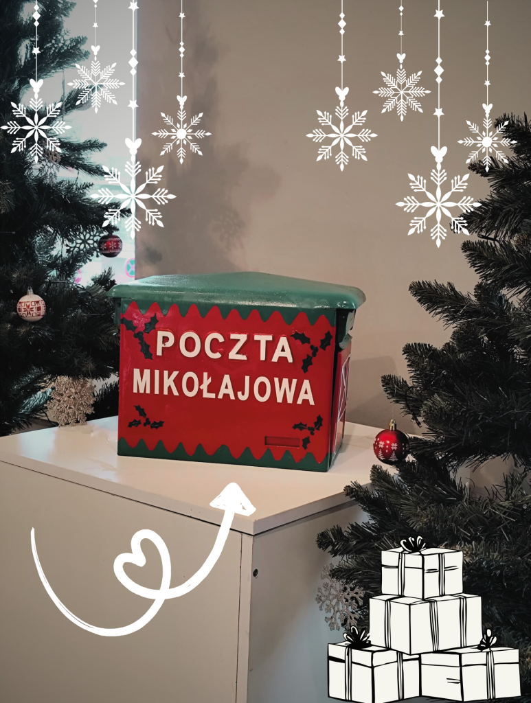 Jednak ze względów organizacyjnych musieliśmy przenieść naszą mikołajkową skrzynkę do środka budynku.
