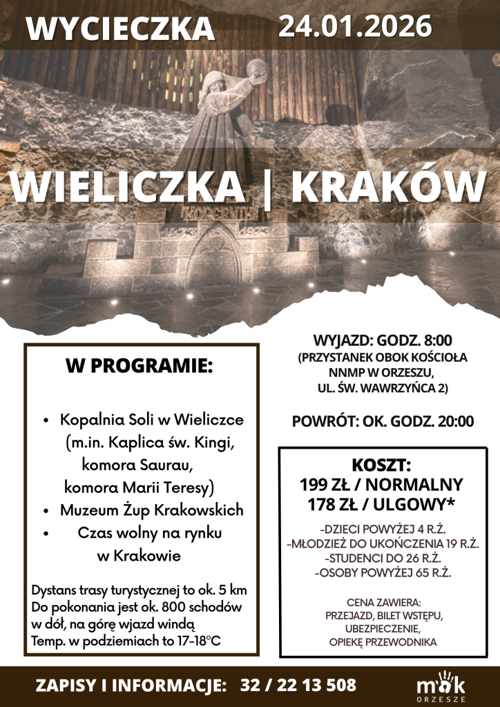 Wyjazd: 24 stycznia o godz. 8:00 (przystanek obok kościoła NNMP w Orzeszu,