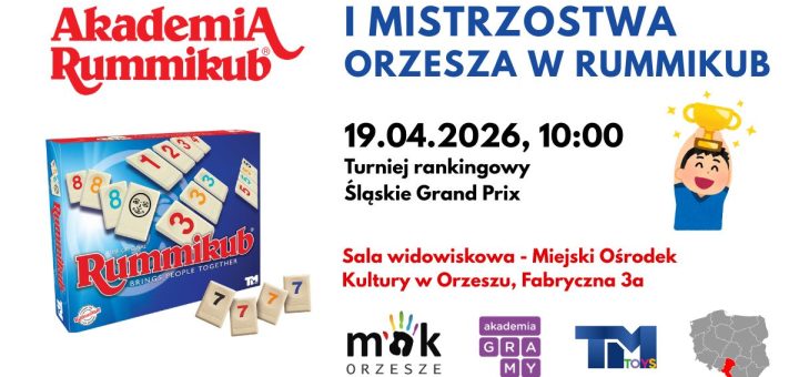 I Mistrzostwa Orzesza w Rummikub – Śląskie Grand Prix Paweł Bednarczyk i Agnieszka Falkowska serdecznie zapraszają na turniej rankingowy, będący eliminacjami do Mistrzostw Województwa Śląskiego 2026, który odbędzie się 19 kwietnia 2026 w Sali...