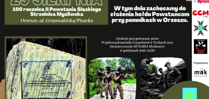 Zapraszamy na korzystanie z atrakcji przygotowanych przezWojskową Komendę Uzupełnień w Tychach oraz Stowarzyszenie HUSARIA Mysłowice – w godzinach 9:00-15:00. W tym dniu zachęcamy również do złożenia hołdu Powstańcom przy pomnikach w Orzeszu. Miejsce: Strzelnica...