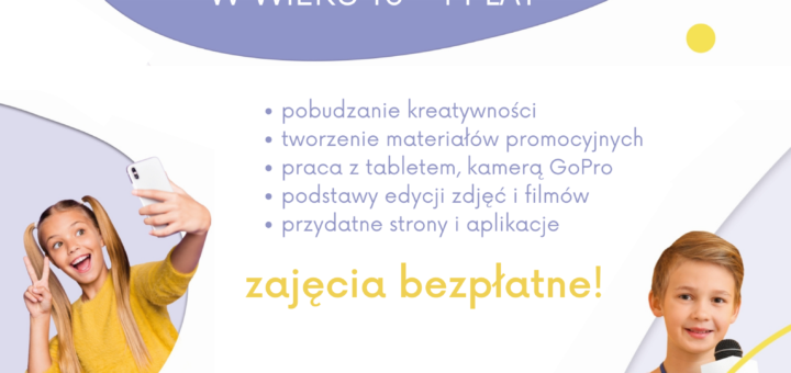 Jeśli masz 10 – 14 lat, marzy Ci się kariera w Internecie, chcesz poznać narzędzia przydatne w pracy youtubera, blogera, a także tajniki obróbki zdjęć i filmików – to zajęcia dla Ciebie! Zapraszamy na...