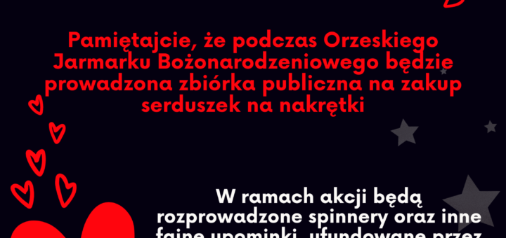 Orzeski Jarmark Bożonarodzeniowy tuż-tuż… Pamiętacie, że oprócz wielu atrakcji, będzie również możliwość wsparcia szczytnego celu, jakim jest Orzeskie Centrum Nakrętkowe? O co chodzi? To wspaniała inicjatywa pana Mariusza Kaczmarczyka, której celem jest zakup serduszek...